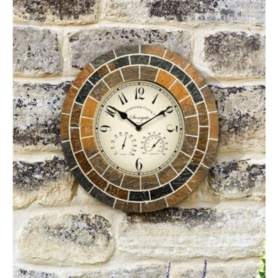 Smart Garden 14in Stonegate Mosaic Clock And Thermometer Suitable For Indoor & Outdoor Use