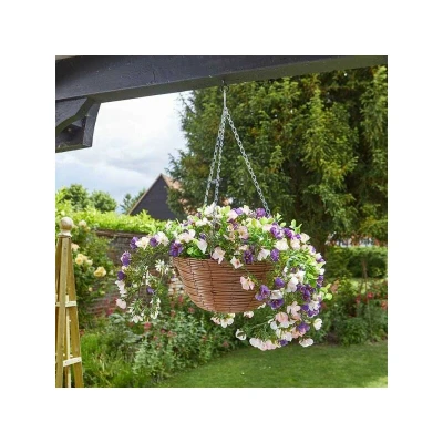 General description The Smart Garden Regal baskets are generously filled with realistic flowers and foliage, providing maximum impact. These beautiful hanging banana braid baskets are perfect for adding a touch of color to your home and garden in all seasons, requiring no maintenance. Technical specifications UV and weather resistant Complete with a 3-way galvanized hanging chain