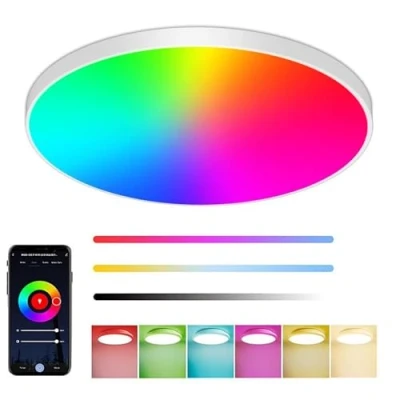 Smart Control Only: Adjust settings via app or voice commands—no remote needed. Vivid RGB Colors: Customize your lighting with millions of color options. Dimmable White Light: Warm 2700K to bright 6500K for versatile lighting needs. Eco-Friendly Illumination: 30W LED with 2000LM brightness and 50,000-hour lifespan. Minimalist Design: Compact Ø30cm build to complement any modern space.