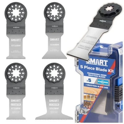 Smart Limited Edition Starlock 5‑Piece Multi‑Tool Blade Kit with Robust Storage Case Includes Rapid Wood, Bi‑Metal & Carbide‑Tipped Metal Buster Blades
