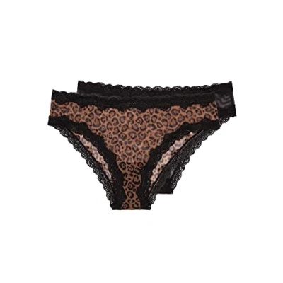 Smart & Sexy Women's Lace Trim Cheeky Panty 2 Pack Hipster, Leopard/Black, XL