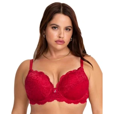 Bombshell bra adds 2 cup sizes instantly! Super-soft, molded double bump, push-up padding lifts you upward and inward adding the cleavage and fullness you crave. Perfect for tight or low-cut tops. This padded bra is complete with underwire support for an added, upward lift. Tighten the front adjustable straps to make the most out of your new-found cleavage. The best push-up bra, the plunge neckline highlights your neckline. Center gore bow and jewel detail are the perfect centerpiece (not included on mesh styles). Cute bras are available in all over lace for special occasions, smooth cups with delicate lace wings and mesh or satin fabric to lay smooth under clothes for everyday wear. Adjustable straps