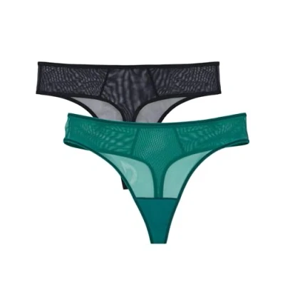 Smart & Sexy Women's Mesh Lace Thong Panties, Available in Multi Packs, Aventurine/Black, XL (Pack of 2)