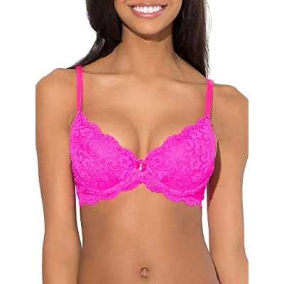 Guaranteed to the be the most effortlessly sexy bra in your rotation. The Smart&Sexy Signature Lace Push-Up Bra has super soft molded cups to create an enhanced, yet natural looking cleavage. Push up bra is designed with all-over floral, Signature Lace. Scalloped lace edges outline the cups. Wings are sheer lace. Center gore bow and jewel detail make this bra the perfect women's lingerie. Cute bras are available in all over lace for special occasions, smooth cups with delicate lace wings to lay smooth under clothes for everyday wear. Create a bra and panty set with the matching panty! Sexy bras for women are fit tested and true to size. Adjustable straps vary in width depending on the bra size for support and comfort. Gated back hook and eye closure so you can customize your fit. Want more of our high quality smart and sexy bras, cleavage enhancing push-ups bras, special occasion bras and bralettes for women? Get sexy bra styles at smart prices at our Amazon brand store!