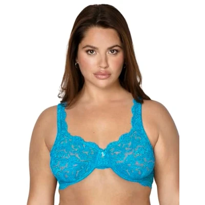 Smart & Sexy Women's Signature Lace Unlined Underwire Bra Full Coverage, Opaque, Mykonos Blue, 34E