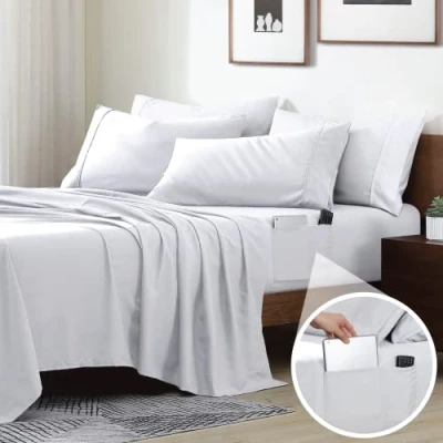 SWIFT HOME DIFFERENCE: We live in an era full of small items we want to keep nearby while in bed. This is why we created Smart Sheets - constructed with two 8” deep storage compartments on both sides of the fitted sheet, it is perfect for keeping small items within reach at all times. The sheets are ultra-soft to the touch and the fitted sheet features deep pocket that is fully elasticized to ensure a snug fit on different types of mattresses. PRODUCT CONTENT: 100% microfiber polyester, double brushed to finish for amazing softness – Microfiber is an ultra-fine fiber that can be made from polyester, nylon, or combinations of the two resulting in fabrics that are thin, but durable and wrinkle, fade and shrink resistant. WHAT’S INCLUDED:Queen Set – one fitted sheet (60” x 80” x 14”), one flat sheet (90” x 102”) and two pillowcases (20” x 30”) EASY CARE: Machine wash on gentle cycle with cold water and like colors. Then tumble dry on low or air dry for best results. OEKO-TEX STANDARD 100 Certified – and industry standard showing the product has been tested to be free of harmful substances & chemicals.