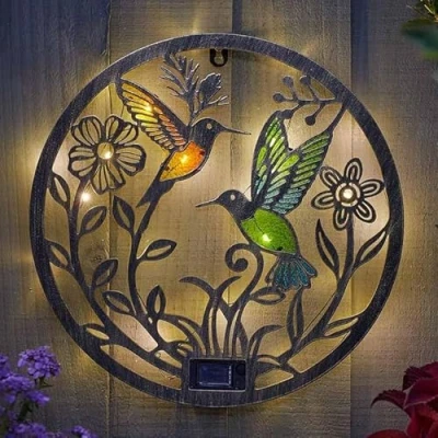 Bring a splash of natures elegance to your garden with the Smart Solar Wings DécorDisc, a stunning "décor by day, light by night™" feature. This eye-catching circular disc showcases two vibrant hummingbirds flitting through delicate floral motifs, creating a beautiful stained-glass effect that sparkles under the sun. Whether youre looking to brighten a balcony, add character to a garden fence, or create a welcoming glow at your front entrance, this solar LED light offers a unique artistic touch that stands out as much in the midday heat as it does during a quiet evening.Experience the ultimate "fit and forget" convenience with this wire-free outdoor solar lighting solution that requires absolutely no electricity or messy cabling. Designed for effortless use, it charges efficiently by day and automatically illuminates at dusk to cast a soft, warm glow through its colourful hummingbird design. Because there is no need for an electrician, you can mount it to almost any wall, shed, or out-building in seconds. It is a durable and energy-efficient outdoor lighting choice that delivers reliable, low-maintenance performance while withstanding the typical British weather.Choosing garden solar lights from SimplyLED is a smart, sustainable way to refresh your exterior style while keeping your running costs at zero. The Smart Solar Wings DécorDisc even comes beautifully boxed, making it an ideal gift for a nature lover or a charming treat to boost your own home's kerb appeal. This eco-friendly lighting fix is an irresistible impulse buy that provides high-impact visual appeal with minimal effort. Add the Smart Solar Wings DécorDisc to y