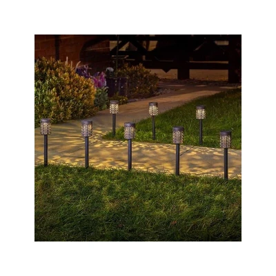 General description These solar-powered garden lights are perfect for illuminating beds, borders, and pathways. During the day, they serve as beautiful decorative pieces, and at night, they cast intricate filigree patterns around your outdoor space, creating a stunning lighting effect. The lights automatically illuminate after dark, providing a dramatic impact in any garden or outdoor area. Technical specifications Height: 36 cm (including the stake) Minimum operating time: 6+ hours when fully charged Material: Intricate laser-cut metal with a hand-painted design Solar panel: In-built Installation Equipped with a ground spike for easy positioning Simply insert firmly into the ground to set up Usage Ideal for illuminating gardens, flower beds, borders, pathways, or driveways Automatically switches on at night using stored solar energy Requires no wires or maintenance