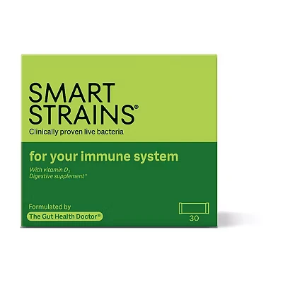 SMART STRAINS® For Immunity Clinically Proven Live Bacteria Immune Support Formulated by The Gut Health Doctor® PhD in Probiotics 20 Billion Bacterial Cultures With Vitamin D3 30 Sachets