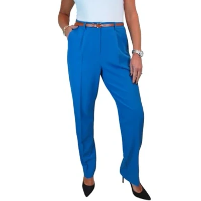 Smart Tailored Fit Pleated Trousers for Women UK Ladies Formal Office Trouser Lightweight Work Pants Mid Blue 8 22 (22)