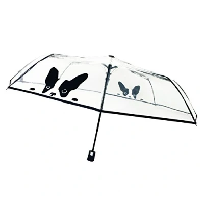 SMARTBULLE Transparent Folding Umbrella Compact; Strong; Windproof; Automatic opening; Diameter=98cm; Women's umbrella; DOG design