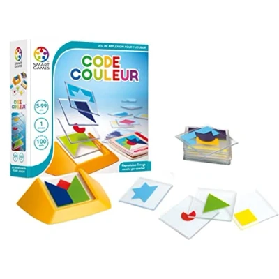 MANY CHALLENGES: One challenge is to choose from among the hundred proposed. Appears a figure to be reconstituted from the eighteen transparent plates to be superimposed. GOAL OF THE GAME: Thanks to the colors visible in the figure, the player can select which plates to use to reconstruct the challenge image, knowing that they are all monochrome and only two of them contain the same color. REFLECTION GAME: Once the color plates are identified, it will still be necessary to find out in which direction to position each shape and in what order to place these different images to reproduce the requested figure. EDUCATIONAL GAME: This game stimulates the following cognitive skills: concentration, spatial intelligence, logic, planning and problem solving. CONTENTS: A game stand, eighteen transparent plates in nine colours, a booklet of 100 challenges and all their solutions., Manufacturer: Smart Games