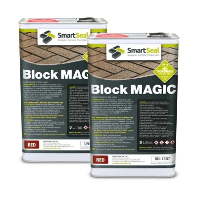General description Smartseal Block Magic is a premium blend of liquid pigments and acrylic resins designed to rejuvenate and protect block paving driveways and patios. This product effectively restores the color lost due to sun exposure, rain, vehicles, and pressure washing, ensuring your paving looks like new. It is suitable for application on old block paving, with the possibility of requiring two coats for a uniform finish. Technical specifications Coverage: 3 m²/litre on average (approximately 2.5 m²/litre on old pavers) Application method: Roller Drying time: 3 hours before re-sanding; tack-free within 2 hours at 20°C Foot traffic permissible after 4 hours; vehicles should be kept off for a minimum of 24 hours at 20°C Temperature range for application: 12°C to 23°C Flash point: 40°C (Abel-Closed Cup) Installation Ensure paving is pressure washed to remove all debris and dirt from joints. Leave paving to dry for 5 clear and dry days. For original sand color: Apply one coat of