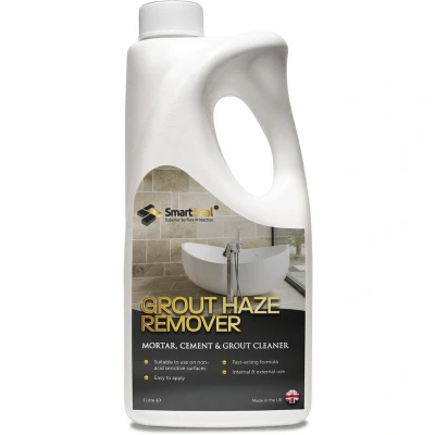 General description Smartseal Grout Haze Remover is a fast and effective solution for removing grout and cement residues from all types of wall and floor tiles. It is particularly useful for eliminating unsightly stains on polished tiles in bathrooms and kitchens. This remover easily tackles residues from grouting compounds such as mortar and cement on various surfaces including ceramic, porcelain, terracotta, slate, and marble. Additionally, it effectively removes efflorescence, ingrained dirt, grime, and deposits of rust, calcium, and limescale. Technical specifications Available sizes: 1 Litre and 5 Litre containers with childproof cap Quick acting formulation Simple and easy application Suitable for internal and external use Coverage rates: Use undiluted for very dirty surfaces; can be diluted up to 1:10 with water for low levels of grout film removal Compatibility and accessories Effective on surfaces resistant to acids: ceramic, porcelain, brick, clay, and quarry tiles Can be