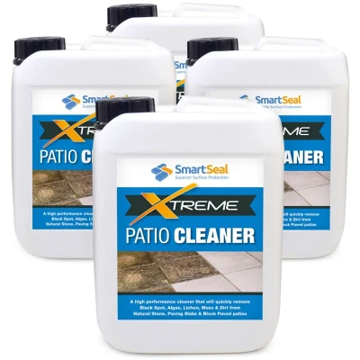 General description PatioClean Xtreme is a fast-acting, high-performance patio cleaning product designed to effectively remove black spots, algae, lichens, moss, and surface grime from block paving, concrete, or natural stone patios. With four powerful active ingredients, it offers a simple solution for maintaining clean patios, often eliminating the need for pressure washing. Technical specifications Volume: 4 x 5 litres Covers approximately 40 m² of flagstone, natural stone, or block paved patios Application ratio: 1:1 dilution for general use; use neat for black spot removal Usage Remove loose debris and heavy dirt build-up from the surface Wet the surface area with water Dilute PatioClean Xtreme at a ratio of 1:1, or use neat for black spot removal Apply the product using a watering can or sprayer Ensure the surface remains wet for up to 60 minutes Rinse the area with water after application For heavily soiled areas, scrub into the surface or re-apply as needed Other information