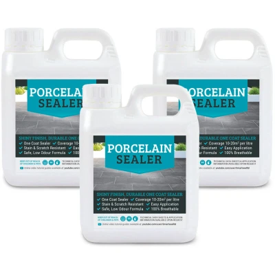 General description Smartseal Porcelain Sealer is a hard-wearing, breathable protective coating designed for modern internal and external porcelain tiles. It is also suitable for ceramic wall and floor tiles, helping to prevent general soiling and surface staining. While not a cosmetic product, it enhances the natural colors of the tiles and leaves a subtle wet look sheen once dry, making cleaning and maintenance easier. Technical specifications Volume: 3 x 1 Litre Average coverage: 10 - 20 m² per litre, depending on surface texture and porosity Application temperature range: 10° to 23°C Installation Always apply to a test area or spare tile first. Only apply to completely dry and clean surfaces. If a sweep-in pointing compound has been used within the last 6 months, clean the porcelain with Smartseal Residue Remover prior to application. Apply a single thin, consistent coat using a microfibre cloth, microfibre flat mop, or paint pad. Avoid application marks and excess pooling of