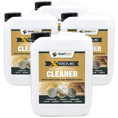 General description Smartseal Xtreme Natural Stone Cleaner is a professional-grade cleaner designed for the effective removal of black spots, mould, mildew, green algae, and general surface staining from various types of natural stone. This powerful alkaline cleaner is safe for use on all natural stone surfaces, making it a preferred choice for both homeowners and professional cleaning companies. Technical specifications Active ingredient: Chlorine Coverage: Up to 160m² per 20L container when diluted 1:1 Recommended dilution ratio: 1:1 for best results Application temperature: Above 5°C, ideally no higher than 22°C Compatibility and accessories Suitable for use on: Sandstone, Black Limestone, Granite, Slate, Marble, Travertine, Quartz Installation Before application, saturate surrounding vegetation with water to prevent damage. For best results, dilute at a ratio of 1:1 and apply using a sprayer or watering can. On heavily soiled areas, use a hand brush or broom to work the cleaner