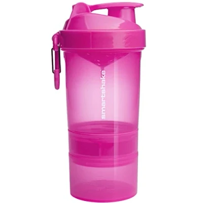 Smartshake Original 2GO Shaker Cup 600 ml Capacity With Storage Protein Shake Bottles Gift Cup, Leakproof & Durable for Shakes, BPA DEHP Free, Neon Pink