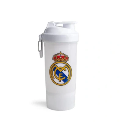 Smartshake dishwasher-safe shaker with approx. 800 ml capacity, in full colour white with real madrid logo Withstands the microwave too Fill indicator with ml and oz display Detachable tin with 150 ml capacity on the bottom side Large opening for easy filling and cleaning