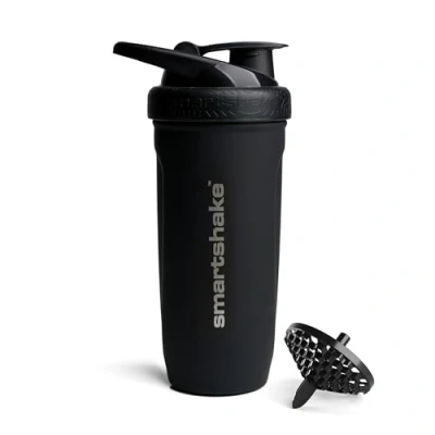Smartshake Reforce Stainless Steel Protein Shaker Bottle 900 ml 30 oz Leakproof Screw on Lid BPA Free Unisex Black