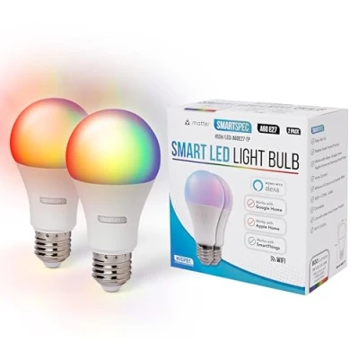 EASY SET UP: If your SmartSpec bulb purchase is linked to your Amazon account, just open the Alexa app to get started. Compatible with Amazon Alexa, Google Home, Apple Home, and Samsung SmartThings. Matter Smart Home Protocol certified ENDLESS COLOUR OPTIONS: Instantly transform your space with 16 million vibrant colours. Set the perfect mood for any occasion—whether it’s a cosy movie night, energising workout, or festive celebration—bringing colour and atmosphere to every moment. COMPATIBLE ALEXA LIGHT BULBS: Enjoy hands-free control with SmartSpec bulbs, fully compatible with Amazon Alexa, Google Assistant, and Apple Siri. Simply use voice commands to turn lights on or off, adjust brightness, or set the mood—no need to lift a finger. PRODUCT INFORMATION: Brilliant Colour & Customisable White Light. Transform any space with 16 million vibrant colours and adjustable white tones from warm to cool (2200K–6500K). Set the ideal ambiance for every moment, from relaxing nights to festive celebrations. The standard A60 fitting makes it compatible with a wide range of fixtures. Supplied as 2 bulbs ABOUT US: Smartspec is part of the Hispec Group, trusted in life safety electrical products protecting and illuminating millions of homes across the UK. SmartSpec is dedicated to enhancing your everyday living through cutting-edge technology. Our WiFi and Alexa-enabled smart lighting and smart home solutions make homes more connected, convenient, and stylish giving you effortless control throughout the home. Smartspec is dedicated to making life brighter, smarter and safer, one home at a time.