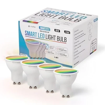 SMARTSPEC Smart Bulb 4 Pack, WiFi LED Light. Works with Amazon Alexa, Google Home, Apple Home. Colour Changeable. Multicolour Light ACK Matter GU10