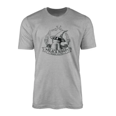 SMARTYPANTS Black Mage Magic Shoppe T Shirt Top Tee Fantasy Game Gaming Witch Wizard Final Series Fan Inspired Sorcerer Birthday Illustration Gift Present (Medium, Sports Grey)