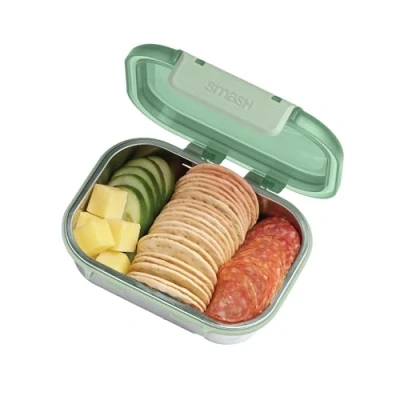 MICROWAVE SAFE STAINLESS STEEL – Heat meals safely and evenly. Simply remove the hinged lid before microwaving. SECURE CLIP CLOSURE – Sturdy side clips and a silicone seal keep your food fresh and prevent leaks 550ml/ 19 oz Capacity – One compartment holds tasty treats and snacks or meal prep portions SAFE & DURABLE – Made from BPA-free materials and high-quality stainless steel for long-lasting, safe use. No More Lost Lids – The convenient hinged lid stays attached, making packing, storing, and cleaning simple and hassle-free., Weight: 0.2976240537 Pounds, Manufacturer: Smash