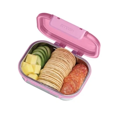 Smash 550ml/19 oz Microwave Safe Stainless Steel Snack Box with Pink Hinged Lid Leak Proof Clip Closure, Silicone Seal, BPA Free