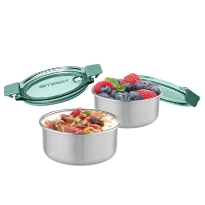 MICROWAVE SAFE STAINLESS STEEL – Heat meals safely and evenly. Simply remove the lid before microwaving. LEAK-PROOF & AIRTIGHT – Each pot features a secure, leak-proof silicone seal to keep contents contained and bags mess-free. Ideal for carrying wet or dry snacks like yogurt, fruit, dips, or nuts. 200ML CAPACITY – Perfectly sized for portioned snacks, these 200ml containers are great for everything from crunchy veggies to creamy treats—keeping food fresh until you're ready to eat. SAFE & DURABLE – Made from BPA-free materials and high-quality stainless steel for long-lasting, safe use. COMPATIBLE WITH SMASH MEALWARE – Fits neatly into the Smash 1.3L 3-Compartment Bento Box and pairs perfectly with your Smash lunch bag or meal box., Weight: 0.33510263824 pounds, Manufacturer: Smash