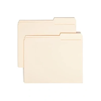 Choose one tab position for straight-line filing, which speeds retrieval time. Fit any vertical or lateral filing system Each folder is scored to expand 3/4" and provides a perfect solution for everyday filing needs Great for everyday use! Made of 11 point sturdy paper stock Includes 100 letter size (11-5/8" W x 9-1/2" H) manila folders with right position 2/5-cut tabs Proudly made in the USA. Contains 10% recycled content, 10% post-consumer material and is SFI Sourcing Certified