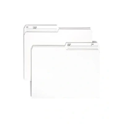 Straighten up your files and keep documents organized with these letter size 1/2-cut printed tab ivory file folders (11-5/8" W x 9-1/2" H overall, 9" H body) designed for your filing needs Everything has its place with this box of 100 ivory folders with printed tabs designed for desktop and drawer filing, helping you maintain the order you need to keep your office organized Sturdy paper stock in ivory with reversible tab protects important papers and makes it easy to find what you need at a glance, or replace the tattered files in your cabinet with fresh folders Organize your files with this classic solution, perfect for bills, recipes, projects, correspondence, vehicle records, client information and more Proudly made in the USA, these ivory file folders contain 10% recycled content, 10% post-consumer material and are SFI Sourcing Certified; Available in additional colors