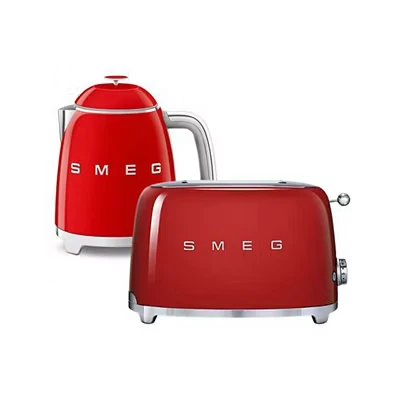 Smeg 50’s Style Retro Range Breakfast Set, 0.8L 1400W Mini Kettle and Multi Functional Control 2 Slice 950W Toaster, Red, KLF05RDUK/ TSF01RDUK