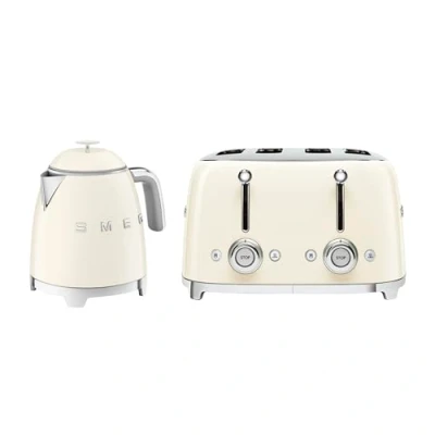 Smeg 50’s Style Retro Range Breakfast Set, 0.8L 1400W Mini Kettle and Multi Functional Control 4 Slice 2000W Toaster, Cream, KLF05CRUK/ TSF03CRUK