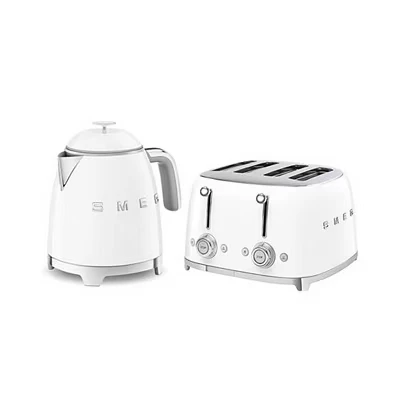 Smeg 50’s Style Retro Range Breakfast Set, 0.8L 1400W Mini Kettle and Multi Functional Control 4 Slice 2000W Toaster, White, KLF05WHUK/ TSF03WHUK