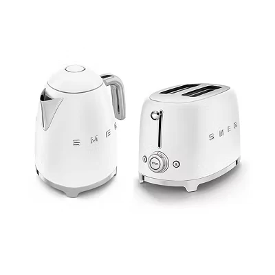 Smeg 50’s Style Retro Range Breakfast Set, 1.7L 3000W Kettle and Multi Functional Control 2 Slice 950W Toaster, Matte White, KLF03WHMUK/ TSF01WHMUK