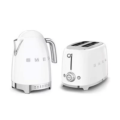 Smeg 50’s Style Retro Range Breakfast Set, 1.7L 3000W Variable Temperature Kettle and Multi Functional Control 2 Slice 950W Toaster, White, KLF04WHUK/ TSF01WHUK