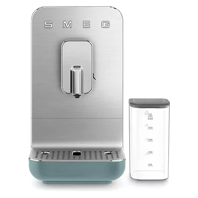 #html-body [data-pb-style=O3TGJJJ]{justify-content:flex-start;display:flex;flex-direction:column;background-position:left top;background-size:cover;background-repeat:no-repeat;background-attachment:scroll}Smeg BCC13EGMUK Matte Emerald Green 50's Style Bean to Cup Coffee Machine Auto Milk FrothingFrom freshly ground beans to an enveloping aroma: thanks to the automatic coffee machine it is possible to enjoy a wide variety of drinks at the touch of a button. With an integrated milk system that dispenses milk preparations automatically. Heating system with Thermoblock technology keeps water at the optimal temperature for brewing coffee. The built-in coffee grinder ensures true coffee flavour from freshly ground coffee beans. The 'One Touch' function delivers beverages with a single touch. Compact and space-saving design, perfect for limited spaces or minimalist kitchen setups. Perfect foam for every drink thanks to the integrated milk system. Pump pressure 19 bar: for consistent espresso extraction. Multi beverage: 5 coffee drinks, 4 milk drinks and hot water function.