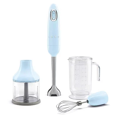 Smeg HBF03CRPBUK Hand Blenders with Turbo Function, 3 Attachments, Retro 50's Style, 700W, Pastel Blue colour