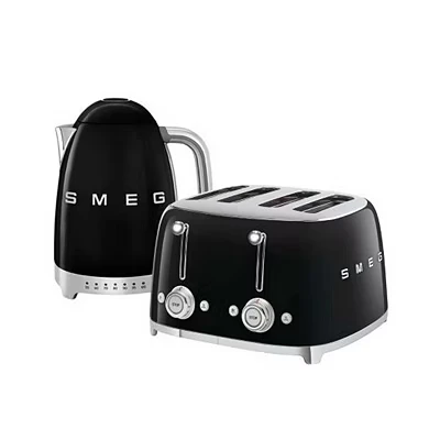 Smeg KLF04BLUK Jug Kettle with 7 Temperature Settings , 3KW, 1.7L & TSF03BLUK 4 Slice Toaster, Extra Wide Slots, Black