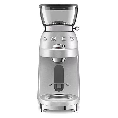 - The Smeg coffee grinder's conical burr gives you a smooth, consistent grind for a more even-tasting brew - Pick from 50 grind settings - superfine, fine or medium - to match the beverage you're making - The 250 g bean hopper is made from durable Tritan Renew and seals tight to keep your beans fresh - Comes with a universal portafilter support and a magnetic base to keep your coffee setup neat - Its compact design won't crowd your countertop, so you can leave it out for daily use