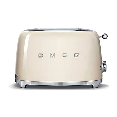TSF01CRUK Two Slice Toaster in Cream Smeg TSF01CRUK. Number of slices: 2 slice(s), Product colour: Cream, Housing material: Steel. Power: 950 W, AC input voltage: 220-240 V, AC input frequency: 50 - 60 Hz Whether you're preparing breakfast before the school run, or a luxurious treat for breakfast in bed, the Smeg TSF01 two slot toaster has got it covered. This two slice toaster is perfect for those who like to make a statement in the kitchen, but can also handle warming pastries, bagels, and toasting treats! Featuring Smeg's iconic retro design and finished in high-quality cream enamel, the 2-slice toaster provides a touch of warmth to any kitchen. Whether you want ultra-crunchy or softer slices, bread can be toasted to suit a wide range of tastes thanks to 6 variable browning levels and 3 illuminated pre-set programs, for reheating, defrosting and bagels. The slots have a variable width which can accommodate a variety of bread thicknesses. The reheat button will warm through those forgotten slices, if you store your bread in the freezer, the defrost function will quickly thaw your bread and toast it to perfection! If you're partial to a bagel, or even cheese on toast, the bagel function browns just one side of the bread without toasting the other. Keeping the toaster clean is very easy, as there is a fully removable stainless steel crumb tray in the base. 2 years Features Self-centering bread mechanism Yes High-lift mechanism Yes Crumb tray Yes Reheat function Yes Defrost function Yes Removable crumb tray Yes Stop/cancel button Yes Non-slip feet Yes Number of slots 2 Long slot Yes Number of browning levels 6 Variable crust browning control Yes Warming rack No Sandwich rack No Control type Buttons, Rotary Housing material Steel Product colour Cream Number of slices 2 slice(s) Power AC input voltage 220-240 V AC input frequency 50 - 60 Hz Power 950 W