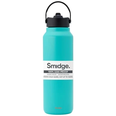 Smidge Large Insulated Water Bottle 1.2L Aqua BPA Free Stainless Steel Reusable Flask with Sipping lid, Leakproof, Vacuum Sealed for Hot & Cold Drinks