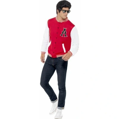 Smiffys 50s College Jock Letterman Jacket, Red , 1950's Rock'n'Rolla Fancy Dress, 1950s Dress Up Costumes