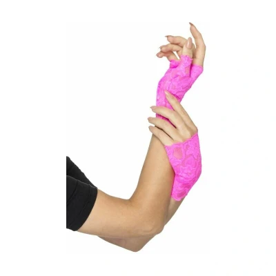 Smiffys 80s Fingerless Lace Gloves, Neon Pink Short, 1980's Fancy Dress, 1980s Dress Up Accessories