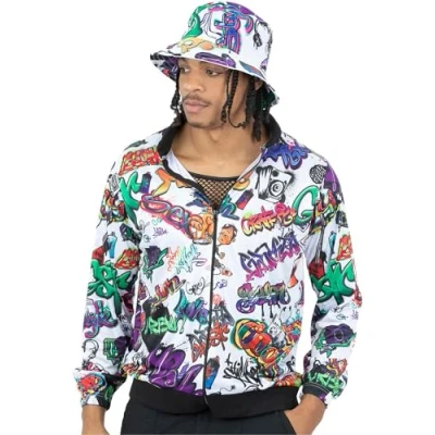 Smiffys 90s Hip Hop Graffiti Jacket, 1990's Fancy Dress, 1990s Dress Up Costumes, medium