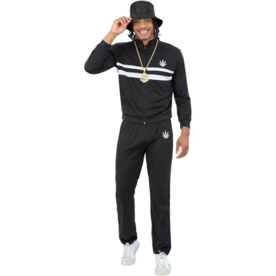 RETRO 90S STYLE: Black zip-up tracksuit with white stripe detail and bold graphic motif, designed to capture iconic hip hop and streetwear fashion vibes COMPLETE COSTUME SET: Includes matching black jacket and trousers, giving you an instant throwback outfit that’s ready to wear for themed events. Chest 46"-48" / Waist 40"-42" / Leg Inseam 33.25" PARTY READY LOOK: Perfect for 90s themed parties, festivals, stag dos, birthdays and fancy dress celebrations, ensuring instant old-school style COMFORTABLE AND PRACTICAL: Lightweight material and relaxed fit allow freedom of movement, making it great for dancing, partying and all-night fun OFFICIAL SMIFFYS COSTUME: Made with quality materials and attention to detail, this retro tracksuit delivers durability, comfort and authentic throwback flair, Manufacturer: Smiffys