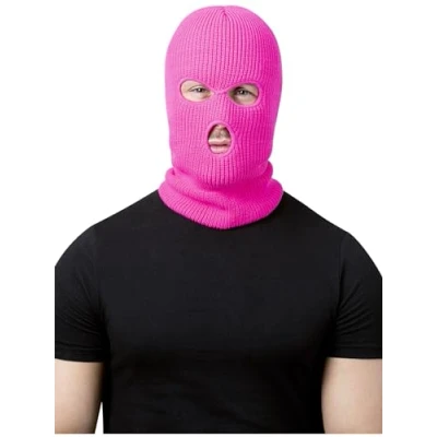 Smiffys Balaclava Ski Mask, Neon Pink, Halloween Fancy Dress Accessory, Bank Robber/Burglar Up Hats
