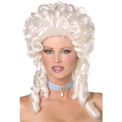Smiffys Baroque Wig, White Shoulder Length with Ringlet Curls, Ladies Glamour Wigs Fancy Dress, Adult Dress Up
