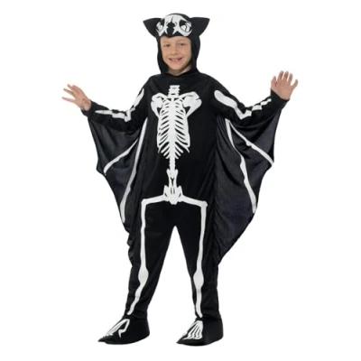 Includes Bat Skeleton Costume, Black & White with Hooded Bodysuit & Attached Wings Age 4-6, Waist 21.5-22.5" / Chest 23-25" / Height 46-51" All our children’s costumes are tested to both EN71 and Nightwear (Safety) standards. This is to provide complete reassurance that all our children’s costumes are safe and fit for purpose. Smiffys is a leading fancy dress supplier and family business with a 125 year heritage in costumes, wigs, make up and accessories. Please note that all our Smiffys products will always come in full Smiffys branded packaging., Manufacturer: Smiffys